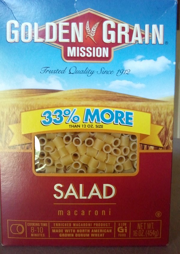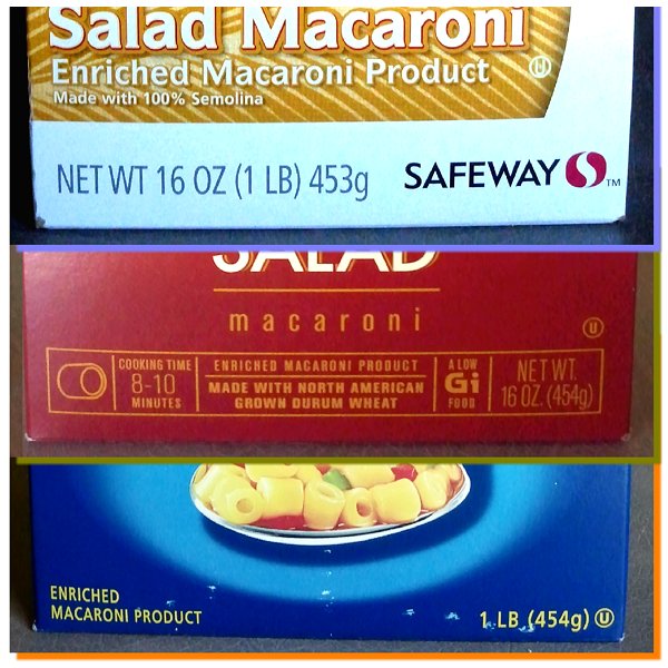 I like to make macaroni salad for summertime picnics or lunches. We were running low on macaroni, so Lucy picked up a box while at the market.