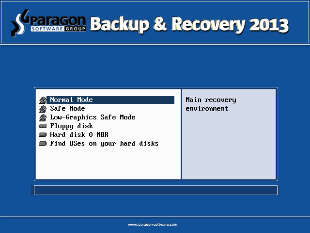 Be patient. It may take several minutes while Paragon assesses the system before getting to the main menu.